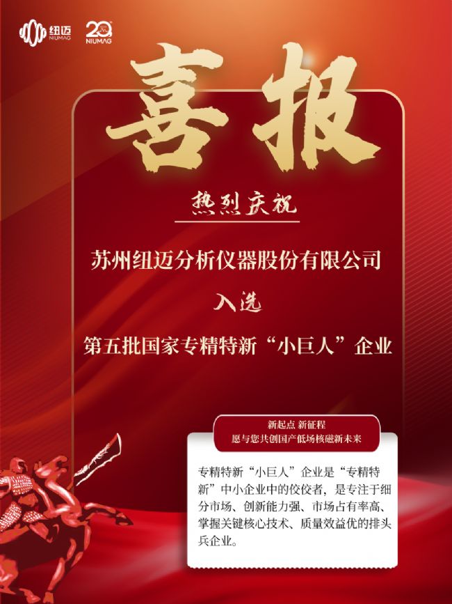 當(dāng)前位置 > 首頁 > 行業(yè)資訊 > 新聞 > 紐邁成功入選第五批國(guó)家專精特新小巨人企業(yè)