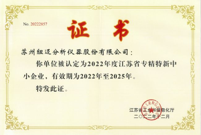 此次能夠入選第五批國(guó)家專精特新“小巨人”企業(yè),意味著紐邁分析自主研發(fā)創(chuàng)新及綜合競(jìng)爭(zhēng)實(shí)力得到了認(rèn)可。值得一提的是,2022年度,紐邁分析也成功入選了江蘇省“專精特新”企業(yè);