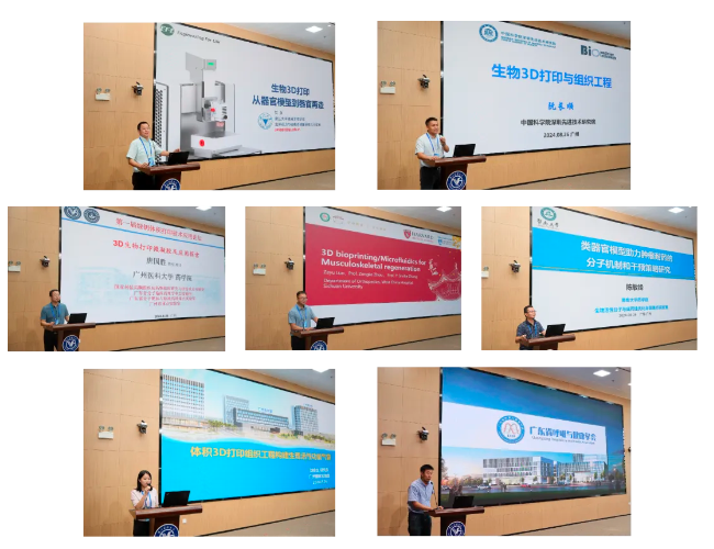 主旨報(bào)告環(huán)節(jié),邀請(qǐng)了賀永教授、阮長(zhǎng)順教授、唐國(guó)勝教授、羅澤宇教授、陳敏鋒教授、劉會(huì)生教授以及江波老師等業(yè)內(nèi)杰出專(zhuān)家分享了他們?cè)谏锎蛴『腕w積生物打印領(lǐng)域的最新成果和應(yīng)用實(shí)例。他們的精彩發(fā)言和深入探討為與會(huì)者提供了重要的參考,并為生物醫(yī)學(xué)領(lǐng)域的未來(lái)發(fā)展注入了強(qiáng)勁動(dòng)力。