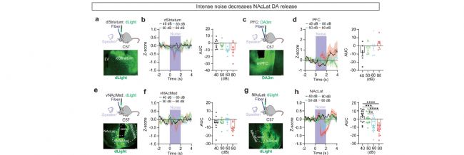 瑞沃德光纖記錄系統(tǒng)幫助監(jiān)測CIC、CnF、VTA等腦區(qū)神經(jīng)元鈣信號及NAcLat多巴胺釋放動態(tài)變化,為該環(huán)路介導噪聲負性情緒編碼提供了關鍵在體證據(jù)。