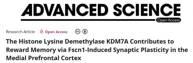研究發(fā)現(xiàn)內側前額葉皮層(mPFC)中的組蛋白去甲基化酶KDM7A通過調控下游靶基因Fscn1(Fascin肌動蛋白成束蛋白1)的表達,參與嗎啡獎賞記憶鞏固。KDM7A可去除Fscn1啟動子區(qū)的抑制性組蛋白標記H3K9me2和H3K27me2,促進Fscn1表達,進而增加mPFC神經(jīng)元樹突棘密度和神經(jīng)元活性;敲低KDM7A或Fscn1均會削弱嗎啡條件性位置偏愛(CPP)記憶鞏固。