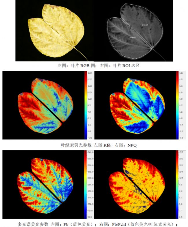3) 葉綠素熒光成像、UV-MCF多光譜熒光成像雙重成像檢測分析