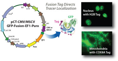 SBI開發(fā)的產(chǎn)品能夠把細胞內(nèi)細胞器、細胞溶膠、細胞骨架等各個組分的標志蛋白與GFP融合,構(gòu)建慢病毒載...