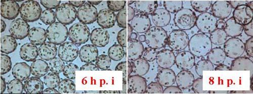 圖 8.間歇式混合方式的 MDCK細(xì)胞微載體貼壁情況