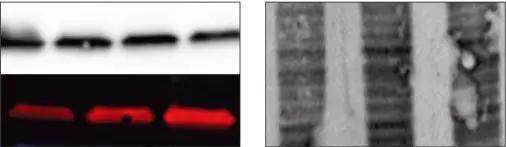 2.成像前用甲醇將膜干燥。當(dāng)印跡膜干時(shí),膜上的自發(fā)熒光減少,熒光基團(tuán)發(fā)出的特異性信號(hào)變亮