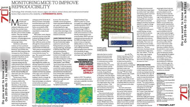 2019年6月13日TECNIPLASTE泰尼百斯DVC(數(shù)字化獨(dú)立通氣籠)登上Nature雜志。