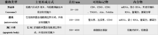 表1 各種細(xì)胞外囊泡的區(qū)別