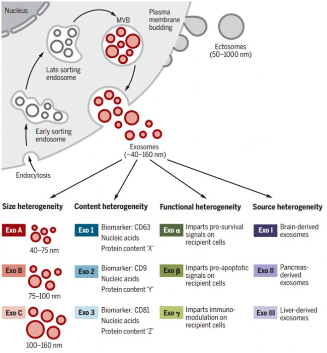 北京時(shí)間2013年10月7日,在卡羅琳醫(yī)學(xué)院的諾貝爾大廳,諾貝爾獎(jiǎng)的評(píng)選委員會(huì)秘書長(zhǎng)戈蘭·漢松宣布,將當(dāng)年的諾貝爾生理學(xué)或醫(yī)學(xué)獎(jiǎng)?lì)C給三位杰出的科學(xué)家,即詹姆斯·E·羅斯曼(James E.Rothman)、托馬斯·蘇德霍夫(Thomas C.Südhof)以及蘭迪·謝克曼(Randy W.Schekman),以表彰三人共同解答的一個(gè)科學(xué)問(wèn)題:細(xì)胞如何組織運(yùn)轉(zhuǎn)其內(nèi)部的一個(gè)重要的傳輸系統(tǒng)——囊泡傳輸系統(tǒng)?也正是他們的研究成果以及諾貝爾獎(jiǎng)的巨大影響力,使小小的囊泡被納入更多研究者的視線,隨著后續(xù)進(jìn)行的深入研究,如今這個(gè)小小的囊泡已然裝滿了大大的學(xué)問(wèn),其研究方向涵蓋干細(xì)胞、免疫、靶向給藥、非編碼RNA(如微小RNA)、生物標(biāo)記物、腫瘤治療等熱門研究領(lǐng)域,而其研究前景仍在被不斷地開發(fā)。外泌體是目前這類囊泡傳輸系統(tǒng)中的研究熱點(diǎn),本文將就此介紹外泌體的前世今生。