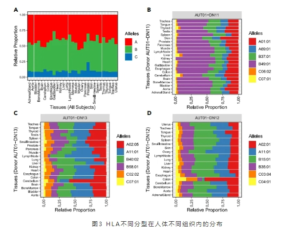 Q1. 免疫多肽的不同分型在人體不同組織的表達(dá)概率相同嗎? 目前對(duì)已免疫多肽的一個(gè)共識(shí)是人類MHC-I免疫多肽存在著異質(zhì)性,隨之而來(lái)的問題就是在異質(zhì)性的前提下,各個(gè)分型在不同組織內(nèi)的表達(dá)概率是否一致?在該研究中,研究人員首先對(duì)來(lái)源于29個(gè)人類