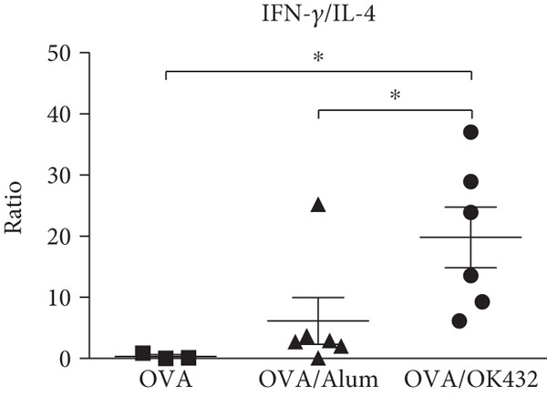 圖3. OK432作為免疫佐劑誘導(dǎo)INF-γ和IL-4比例的升高[5]