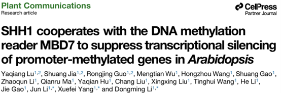 參考文獻:Lu Y, Jia S, Guo R, Wu M, Wang H, Gao S, Li Z, Ma Q, Hu Y, Liu C, Liu X, Wang T, Li H, Gao J, Jun L, Yang X, Li D. SHH1 cooperates with the DNA methylation reader MBD7 to suppress transcriptional silencing of promoter-methylated genes in Arabidopsis. Plant Commun. 2025 Oct 8:101545. doi: 10.1016/j.xplc.2025.101545.