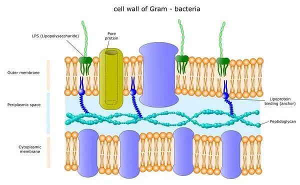 圖1:革蘭氏陰性菌具有內(nèi)膜和外膜兩層。外膜將細(xì)菌細(xì)胞壁與外界環(huán)境隔開,并含有脂多糖(LPS)或內(nèi)毒素。