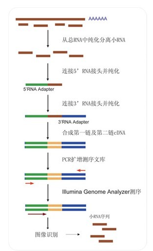 1.提取總RNA2.構(gòu)建成PCR文庫(kù)3.成簇?cái)U(kuò)增4.高通量測(cè)序5.生物信息學(xué)分析